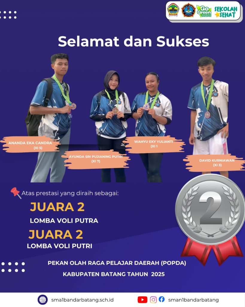 Juara 2 Lomba Voli Putri 2025Oleh tegar sulistya - 31 Desember 2025 Pekan Olahraga Pelajar Daerah (POPDA) Tingkat Kab. Batang 2025 Tags: