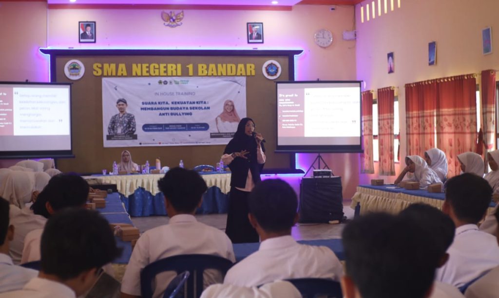 SMA Negeri 1 Bandar, Batang menggelar kegiatan In House Training (IHT) Anti-Bullying selama 2 hari, 14-15 Oktober 2025. Praktisi psikolog, Immatulfathina menjadi narasumber utama dari kegiatan bertema “Suara kita, kekuatan kita: Membangun Budaya Sekolah Anti Bullying” ini.