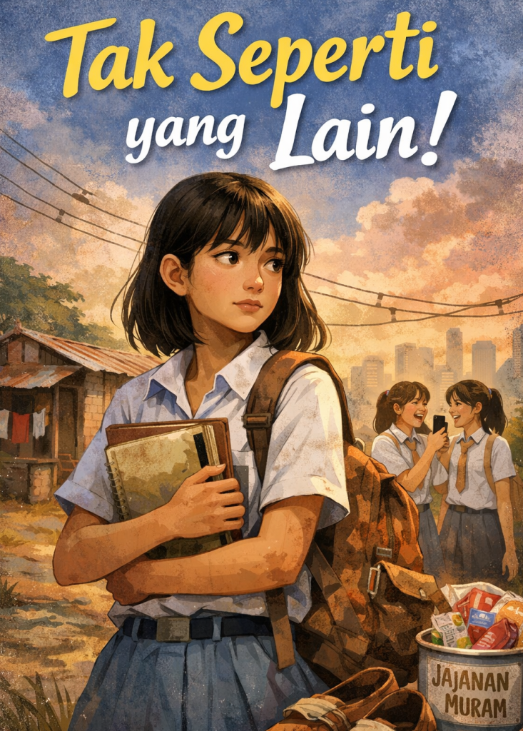 Sedangkan Emak, hanya bekerja sebagai buruh yang tak tentu hasilnya. Aku tak tega melihat kondisi orang tuaku, yang harus menanggung biaya sekolahku dan adikku, juga kebutuhan sehari-hari yang jumlahnya tak sedikit. Ingin sekali aku membantu mereka.
